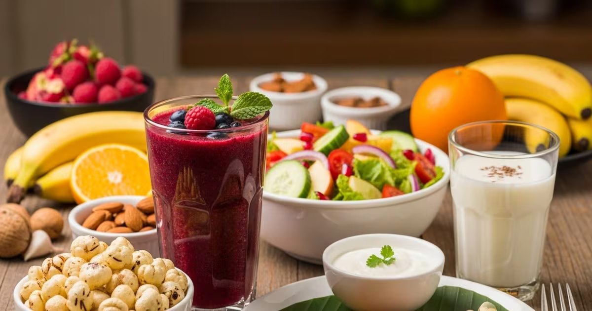 Navratri Fasting Diet: नवरात्रि व्रत में सही खाना चुनना बहुत जरूरी है. बिना तेल और चीनी वाली चीजें जैसे स्मूदी, सलाद, मखाना, साबूदाना चीला और दही-छाछ आपको फिट, हल्का और एनर्जेटिक बनाए रखती हैं. ये आसान भी हैं और शरीर के लिए फायदेमंद भी.